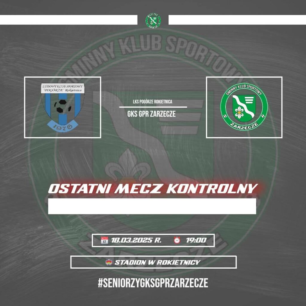 Piłkarze GKS GPR Zarzecze kontynuują przygotowania do nowego sezonu. Już we wtorek, 18 marca 2025 roku, o godzinie 19:00, rozegrają szósty mecz kontrolny. Tym razem ich rywalem będzie drużyna LKS Pogórze Rokietnica. Spotkanie odbędzie się na boisku w Rokietnicy.Będzie to kolejna okazja dla trenera i zawodników GKS GPR Zarzecze do sprawdzenia formy i taktyki przed zbliżającymi się rozgrywkami ligowymi. Mecz z pewnością dostarczy wielu emocji kibicom obu drużyn.