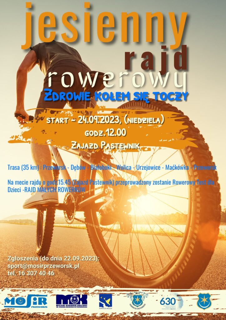 Przed nami ostatni akcent tegorocznych wypadów rowerowych z MOSiR Przeworsk – Jesienny Rajd Rowerowy, który będzie odbywał w ramach imprezy ZDROWIE KOŁEM SIĘ TOCZY.