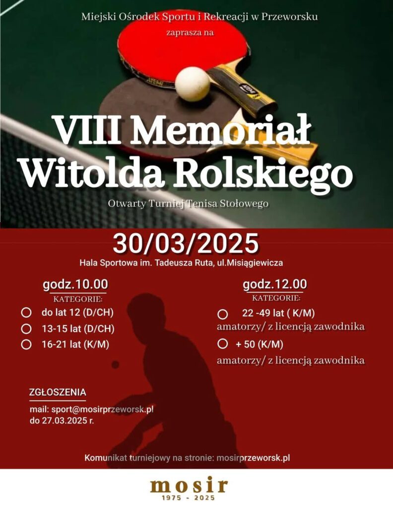 Niedzielę rozpoczniemy od VIII edycji Memoriału Witolda Rolskiego, otwartego turnieju tenisa stołowego. Zawody zostaną rozegrane w dwóch turach: o godzinie 10:00 (I tura) i 12:00 (II tura). Organizatorzy spodziewają się wielu pasjonatów tenisa stołowego, którzy potwierdzili swój udział w turnieju.