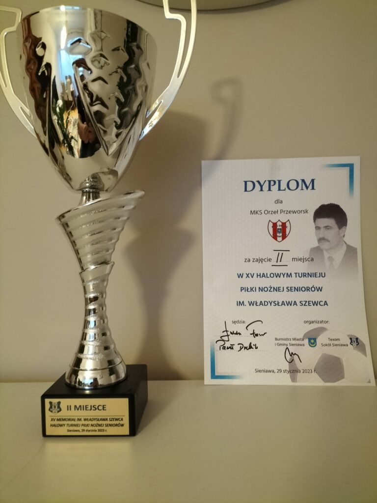 Nasz zespół zajmuje 2 lokatę w mocno obsadzonym w turnieju halowym – XV Memoriale im. Władysława Szewca który rozegrany został w Sieniawie. W turnieju wystąpiło 5 drużyn: Sokół Sieniawa, Orzeł Przeworsk, Puszcza Niepołomice, Siarka Tarnobrzeg, Wólczanka Wólka Pełkińska. Rozpoczynamy grę