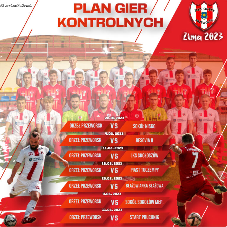 Poznaliśmy plan przygotowań MKS Orzeł Przeworsk do rundy wiosennej rozgrywek V ligi.Zajęcia treningowe prowadzone będą głównie na obiektach MOSiR Przeworsk.W okresie przygotowawczym trener Marcin Laska zaplanował siedem gier kontrolnych. Źródło: MKS Orzeł Przeworsk