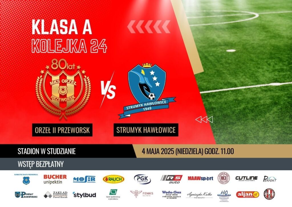 Dziś, 4 maja 2025 roku, o godzinie 11:00, zapraszamy wszystkich fanów futbolu na stadion w Studzianie, gdzie w ramach 24. kolejki Klasy A, drugi zespół MKS Orzeł Przeworsk zmierzy się ze Strumykiem Hawłowice! Przyjdźcie i wspierajcie naszych zawodników!