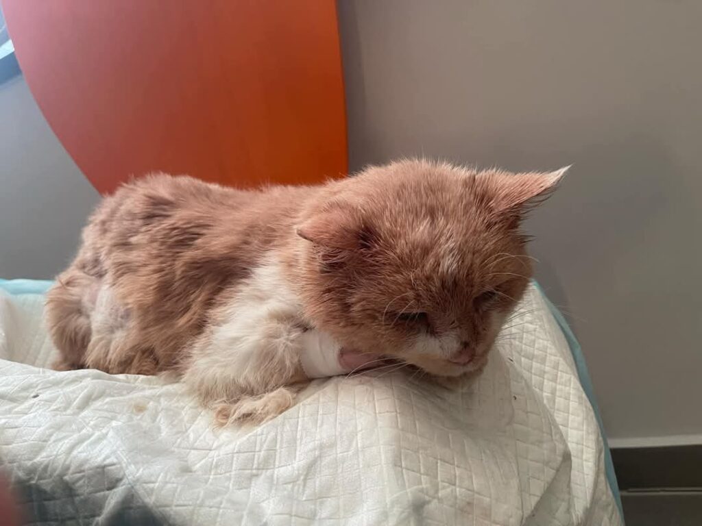 Andrzej to skrajnie zaniedbany, ciężko chory kot, który wymaga natychmiastowej i kosztownej opieki weterynaryjnej. Zwierzę cierpi z powodu krwawiących ran na ciele, wycieku ropy z uszu, chorej nerek, dużego guza w brzuchu (prawdopodobnie przepukliny), a także dwóch mniejszych guzków, które mogą być śrutami obrośniętymi tkanką. Ponadto, stan jamy ustnej kota jest opłakany, a zwierzę zmaga się z kocim katarem.
