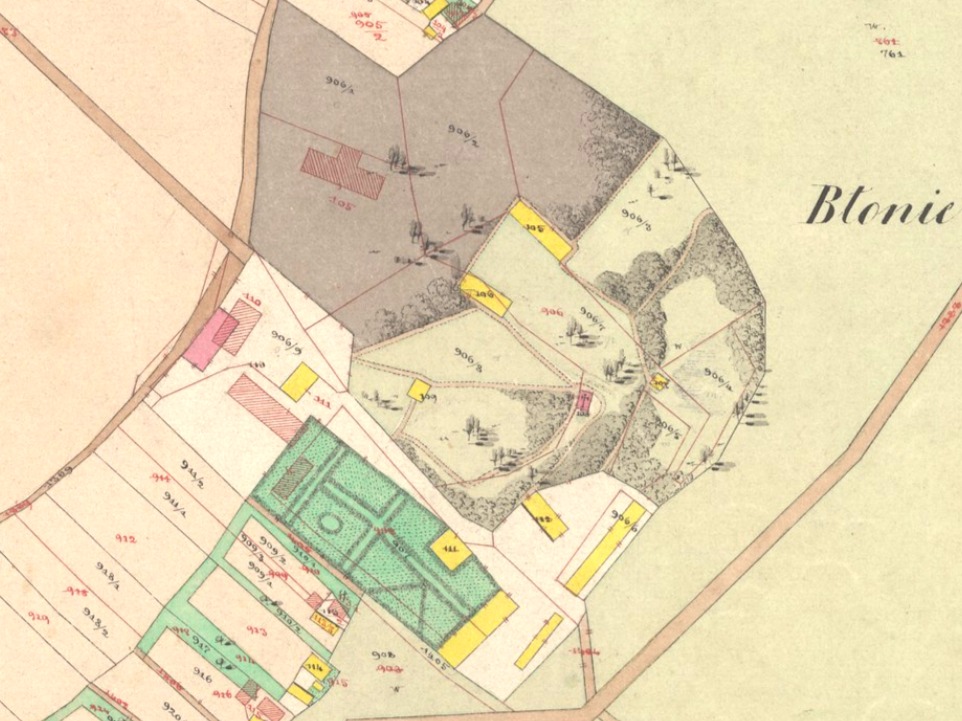 Ogrody otaczające dwór zachwycają kolekcją drzew i krzewów, których wybór podkreśla unikalność krajobrazu, a zarazem kontynuuje tradycje ogrodów historycznych. Na planie katastralnym z 1852 roku wciąż widoczna jest struktura przestrzenna z tamtego czasu, w dużej mierze zachowana do dziś.