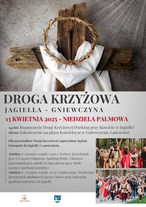 Wszystkich mieszkańców Gminy Tryńcza serdecznie zapraszamy do wzięcia udziału we wspólnej Drodze Krzyżowej, która odbędzie się w Niedzielę Palmową, 13 kwietnia 2025 roku.
