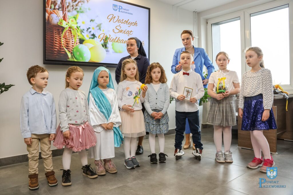 Przeworsk w świątecznym nastroju! W Starostwie Powiatowym rozbrzmiały radosne życzenia wielkanocne od najmłodszych mieszkańców.