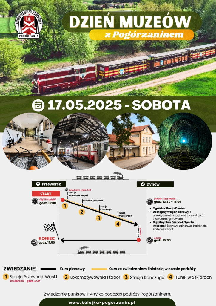 Przeworska Kolejka Wąskotorowa PKW zaprasza na wyjątkowe wydarzenie – Dzień Muzeów z Pogórzaninem, który odbędzie się w najbliższą sobotę, 17 maja 2025 roku!