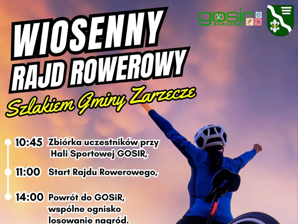 Gminny Ośrodek Sportu i Rekreacji w Zarzeczu poinformował, że zaplanowany na 11 kwietnia Wiosenny Rajd Rowerowy nie odbędzie się w pierwotnym terminie. Decyzja o przełożeniu imprezy zapadła w trosce o bezpieczeństwo i komfort uczestników – zapowiadane opady deszczu oraz niska temperatura mogłyby odebrać radość z pokonywania 30-kilometrowej trasy.