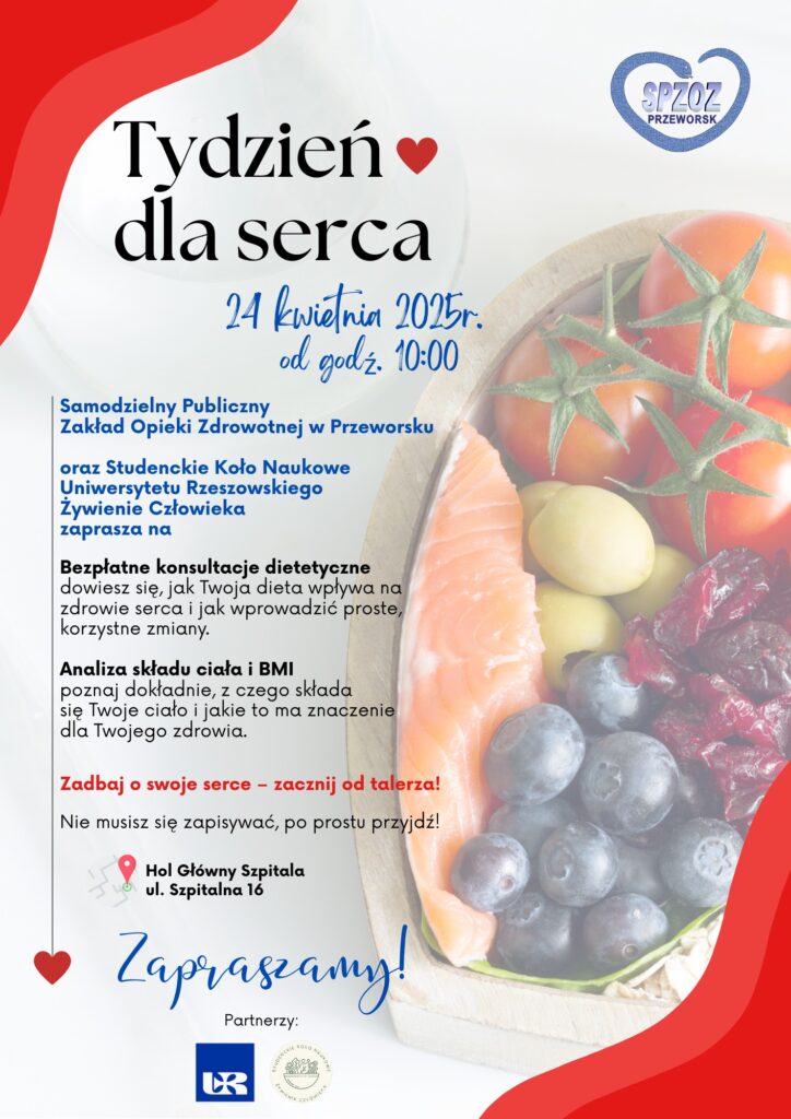 Samodzielny Publiczny Zakład Opieki Zdrowotnej w Przeworsku wraz z Kołem Naukowym Uniwersytetu Rzeszowskiego Żywienie Człowieka serdecznie zapraszają na wyjątkowe wydarzenie w ramach Tygodnia dla Serca!
