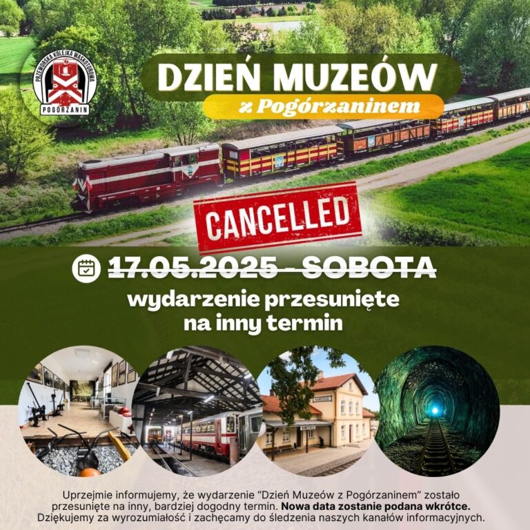 Miłośnicy lokalnej historii i przejażdżek wąskotorowych muszą uzbroić się w cierpliwość. Przeworska Kolejka Wąskotorowa PKW poinformowała o przeniesieniu wydarzenia „Dzień Muzeów z Pogórzaninem” na późniejszy termin. Jak wyjaśniają przedstawiciele kolejki, decyzja ta ma na celu umożliwienie uczestnictwa większej liczbie zainteresowanych,