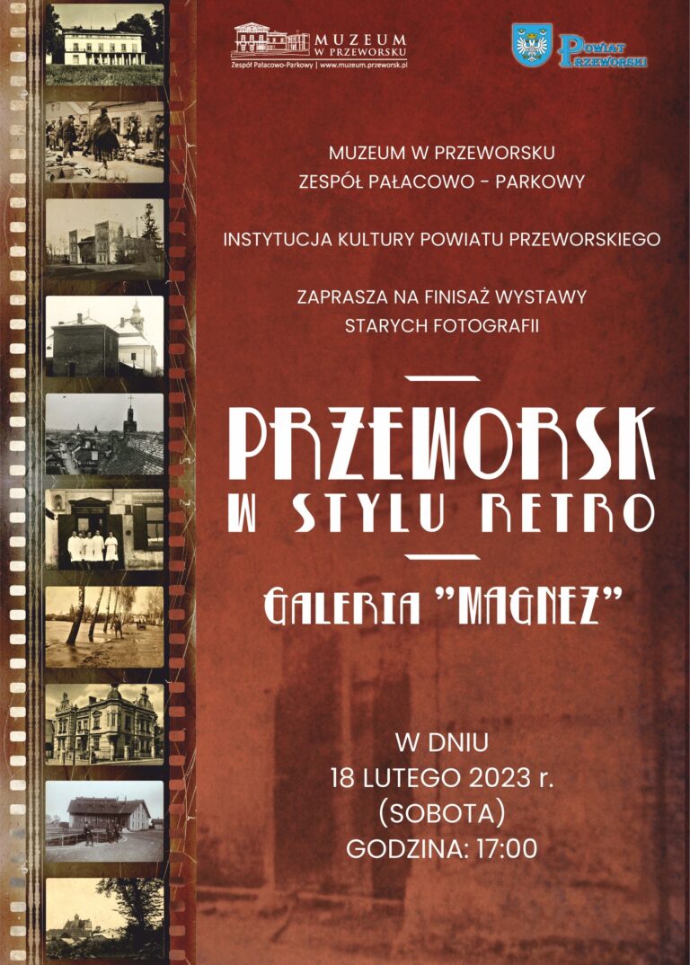 Staraniem Muzeum w Przeworsku odbędzie się finisaż wystawy PRZEWORSK W STYLU RETRO w sali Galerii „Magnez” przy ulicy Krakowskiej 6 w dniu 18 lutego 2023 roku, na który zapraszamy Wielmożnych Państwa. Początek o godz. 17.00. Zapewniamy miłe spędzenie wieczoru. Źródło: