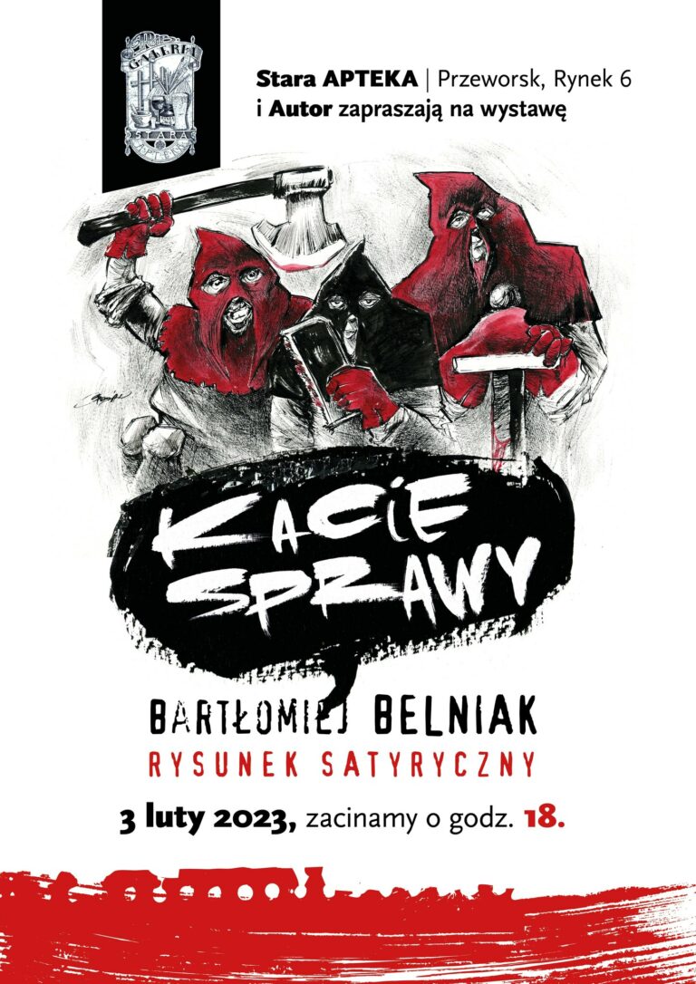 Już 3 lutego 2023r. serdecznie zapraszamy na wystawę rysunku satyrycznego Bartłomieja Belniaka Źródło: Stara Apteka Rynek 6