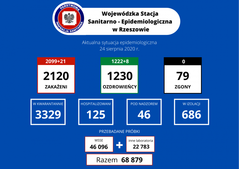 Dane z sanepidu (24/08/2020) Powiat jarosławski • Zakład Opiekuńczo-Leczniczy COM Jarosław – do wczoraj odnotowano tu łącznie 33 pozytywne wyniki: u 19 pacjentów, 10 osób z personelu i 4 osób z kontaktu. • 23 sierpnia uzyskano pozytywny wynik badań u