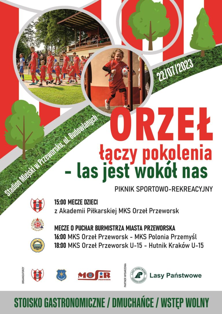 Z radością przypominamy o kolejnej edycji Pikniku Sportowo-Rekreacyjnego „Orzeł Łączy Pokolenia – Las Jest Wokół Nas” który odbędzie się w sobotę, 22 lipca 2023r. na Stadionie Miejskim w Przeworsku. W ramach Pikniku rozegrane zostaną mecze piłkarskie o Puchar Leszek Kisiel