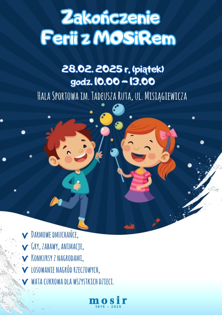 Wczoraj w hali sportowej przy ul. Misiągiewicza zakończyliśmy tegoroczne Ferie z MOSiRem. Piątkowy blok zajęć sportowo-rekreacyjnych był ostatnim, który zwieńczył 10 dni pełnych aktywnośc W tym czasie dzieci mogły uczestniczyć w otwartych zajęciach sportowych oraz rywalizować w turniejach piłki nożnej,