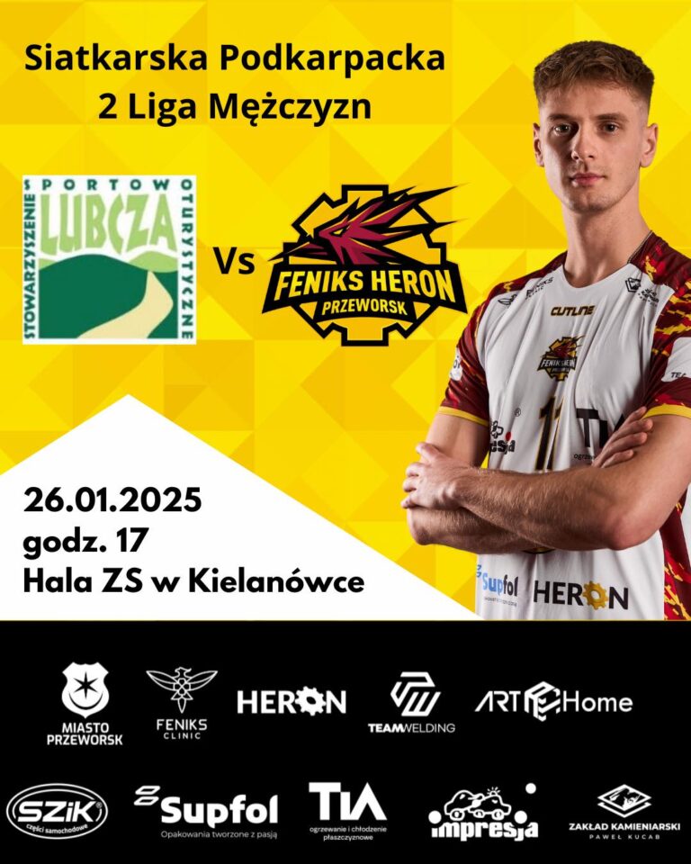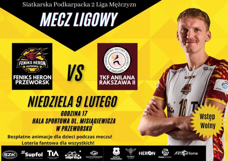 Już w najbliższą niedzielę nasz zespół w ramach Siatkarskiej Podkarpackiej 2 Ligi Mężczyzn zmierzy się z drużyną z Rakszawy. Feniks Heron Przeworsk vs. TKF Anilana Rakszawa 09.02.2025 Hala im. Tadeusza Ruta, ul. Misiągiewicza 10 17:00 Podczas meczu bezpłatne animacje dla