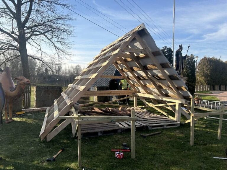 Prace przy Szopce Bożonarodzeniowej w Gniewczynie
